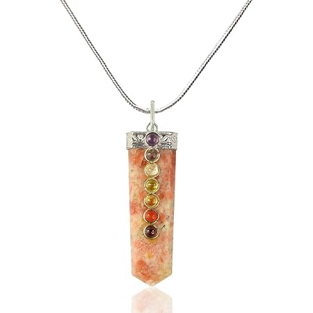 Reiki Crystal Products Sunstone Pendant Chakra Bead Crystal Stone Pendant With Metal Chain For Reiki Healing And Crystal Healing Stone Pendant Size 45 50 Mm Approx Color Peach Amazon In Jewellery